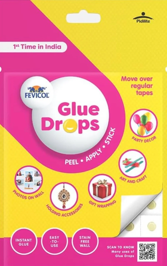 Fevicol Glue Drops are non-messy, multipurpose, strong glue drops that bond instantly to many materials.